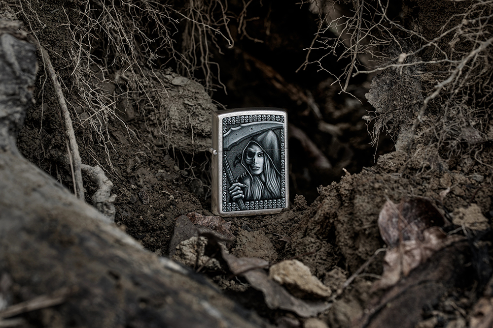 Посмотрим на Смерть с несколько иного ракурса благодаря мрачно-красивому дизайну, выполненному методом цветного изображения на классической зажигалке Street Chrome.