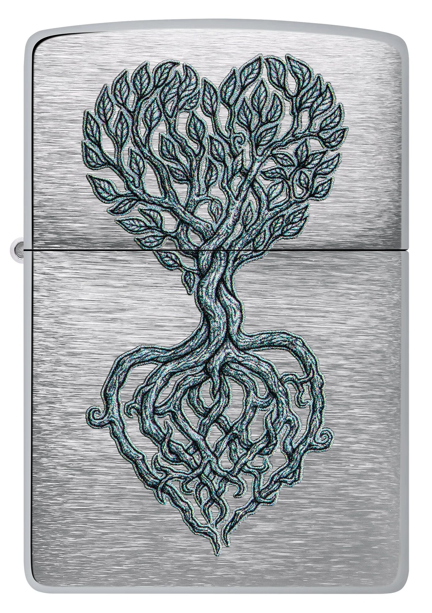 Изящное дерево, образующее форму сердца, словно произрастает с поверхности этой классической зажигалки Brushed Chrome. Очаровательный дизайн выполнен методом цветного изображения.