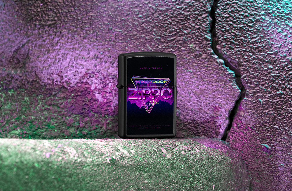 Продемонстрируйте свою любовь к любимому бренду с помощью этой классической черной матовой зажигалки. Дизайн в стиле ретро имитирует сверкающие неоновые огни и отдает дань уважения культовой ветроустойчивой зажигалке Zippo.