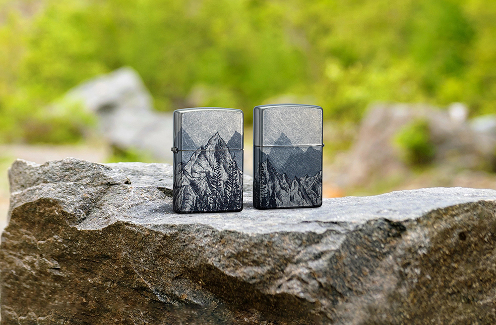 Вдохновленная абстрактными линейными рисунками, монохромная горная местность покрывает все стороны этой классической зажигалки Tumbled Chrome в дизайне 540 Fusion, в котором металлические тона и текстура корпуса зажигалки интегрированы в рисунок для придания ему дополнительной глубины.